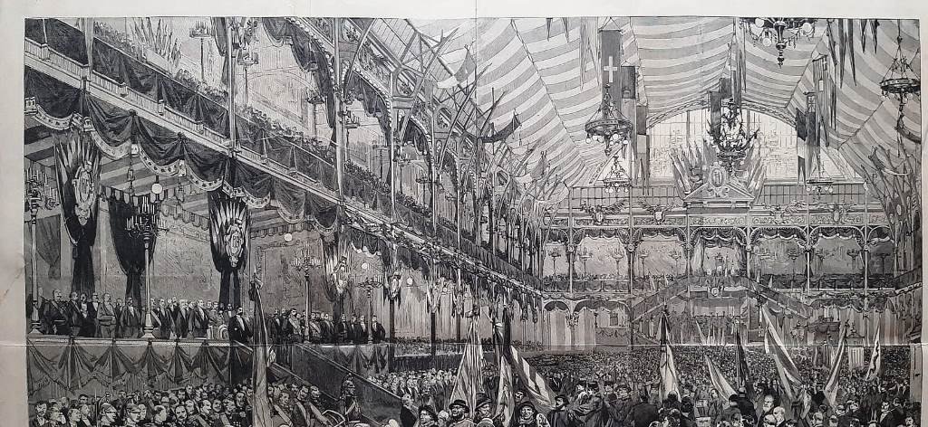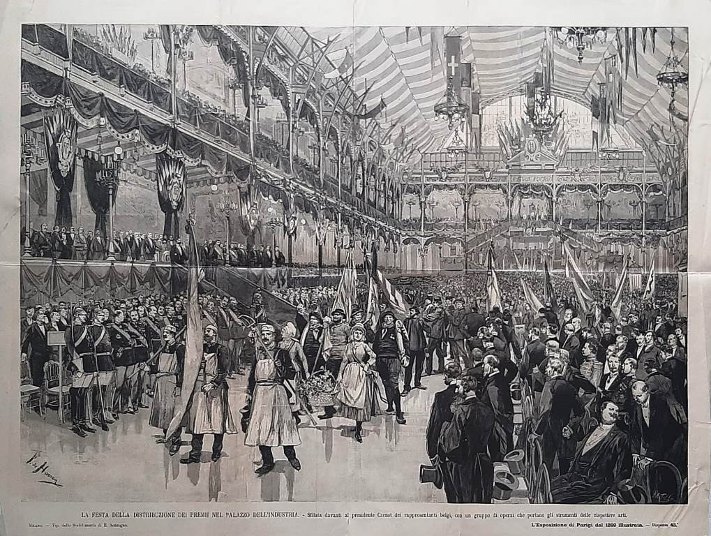 Stampa del 1889 La festa della distribuzione Premi Palazzo Industria Esposizione