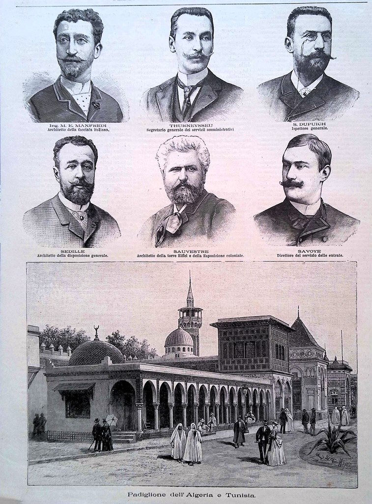 Manfredi, architetto della facciata italiana - Thurneysseu, segretario dei servizi amministrativi - Dupuich, ispettore generale - Sedille, architetto della disposizione generale - Sauvestre, architetto della torre Eiffel - Savoye, direttore del servizio delle entrate