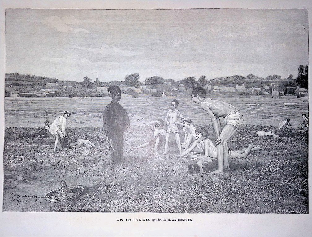 Stampa del 1889 Un intruso quadro di Anthonissen Esposizione di Parigi
