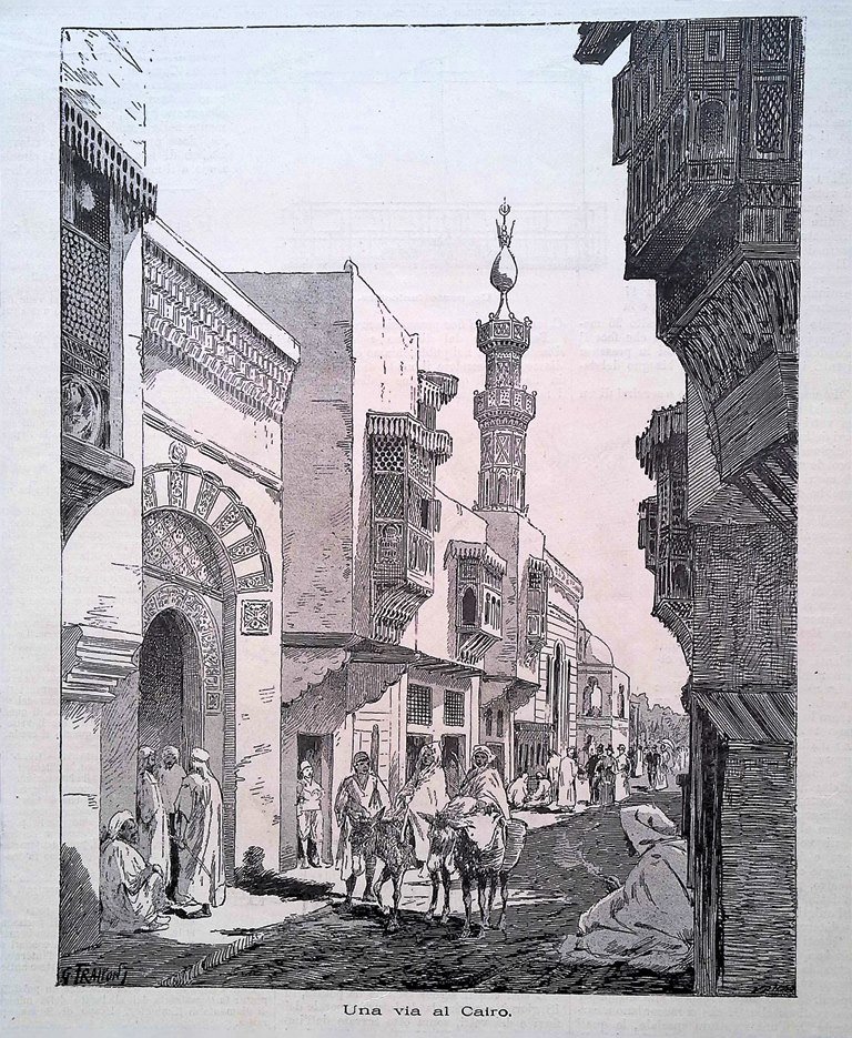 Stampa del 1889 Una via al Cairo Esposizione Universale di Parigi