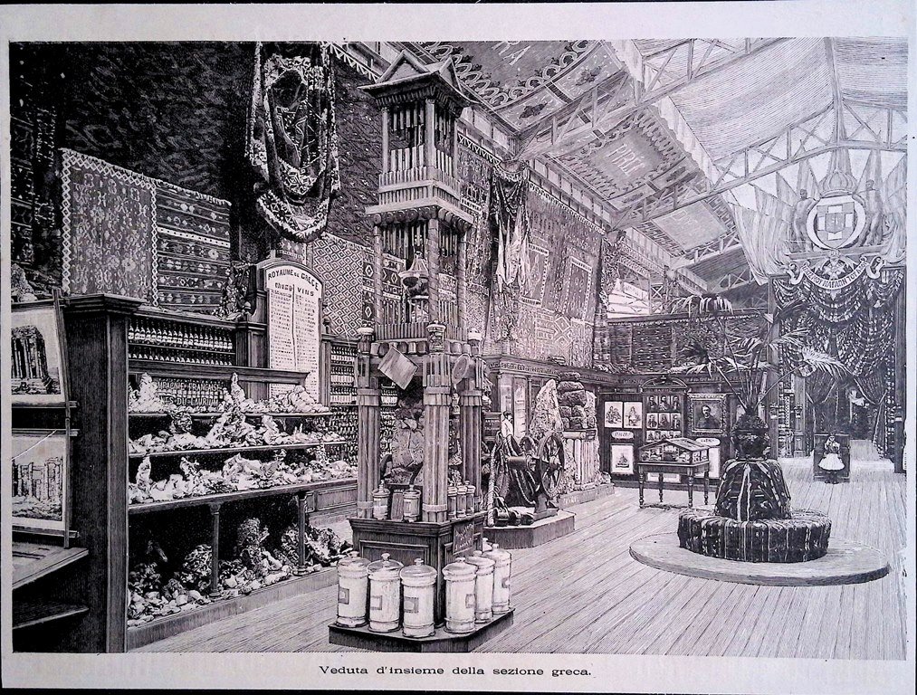 Stampa del 1889 Veduta d'insieme della sezione Greca Esposizione di Parigi