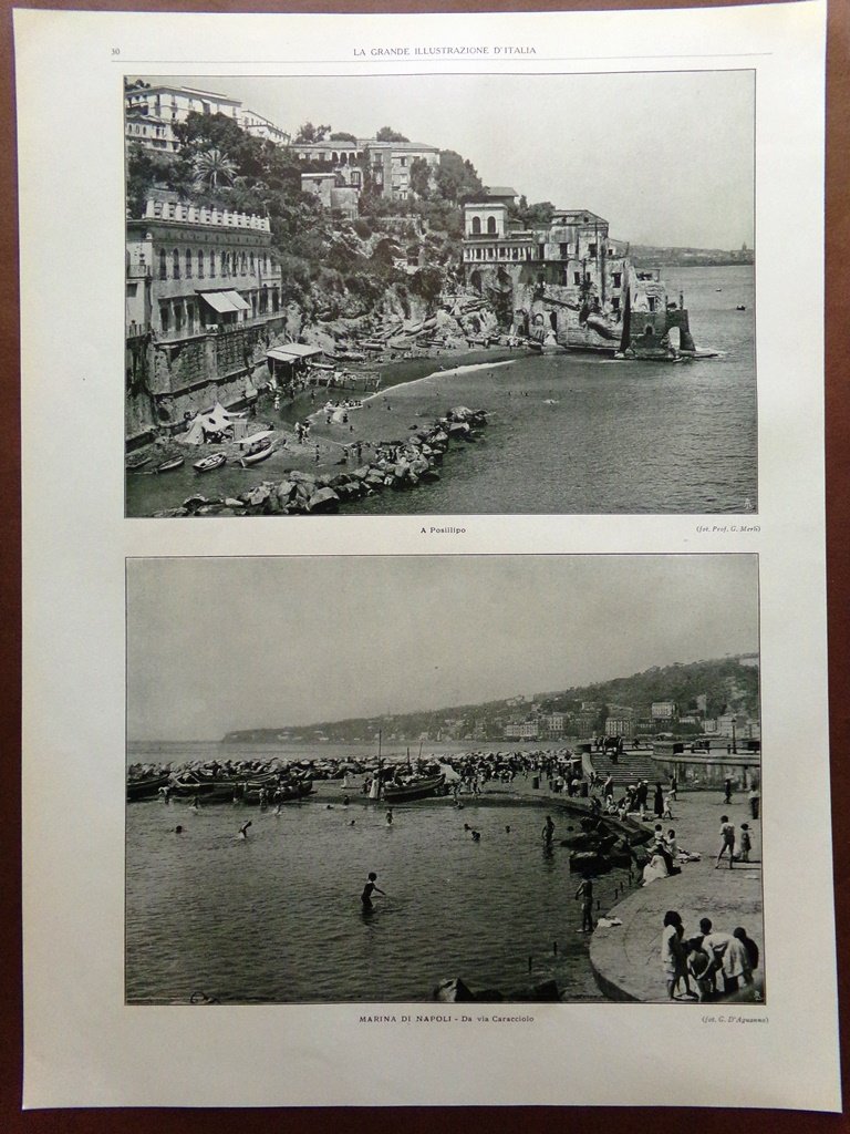 Stampa del 1925 Terni Cascata Marmorelle Posillipo Marina di Napoli Caracciolo