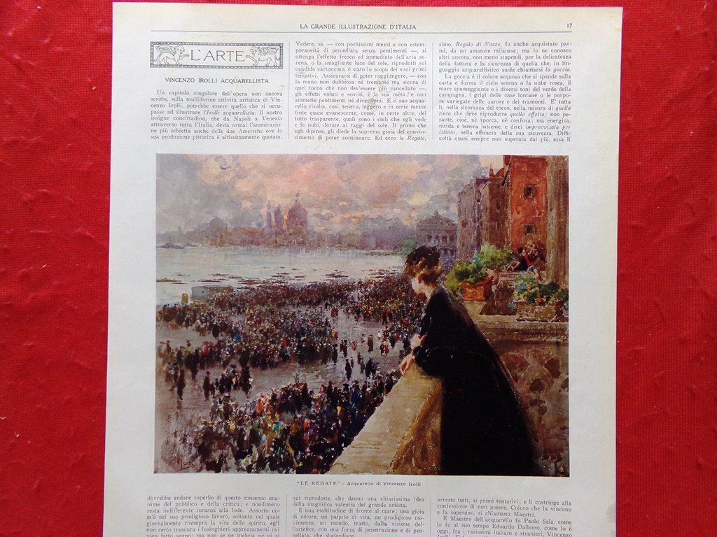 Stampa del 1925 Vincenzo Irolli Le Regate Giardino di Angelo Rescalli