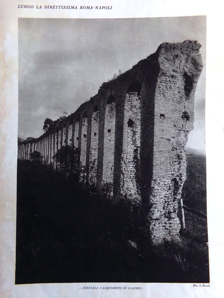 Stampa del 1927 Direttissima Roma Napoli Acquedotto Claudio Via Appia