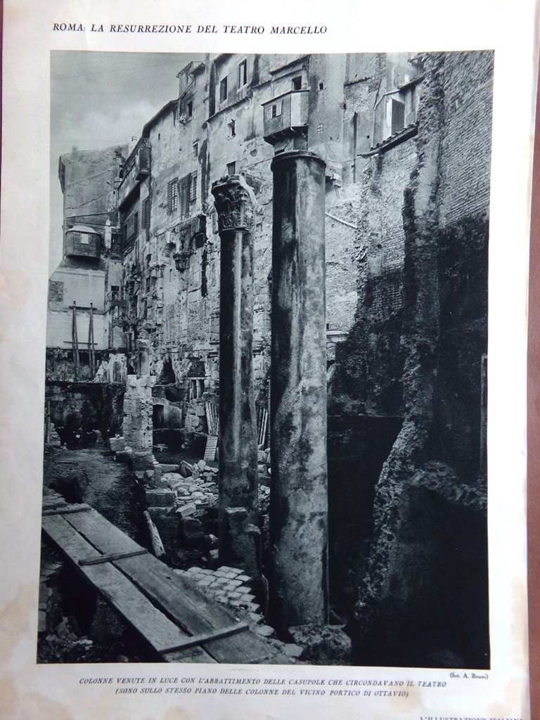 Stampa del 1927 Resurrezione Teatro Marcello Colonne Portale Case Strada Roma