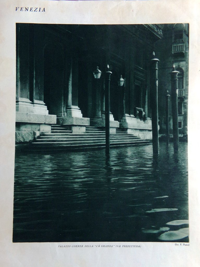 Stampa del 1927 Venezia Palazzo Corner Prefettura Ombre Vecchia Calle