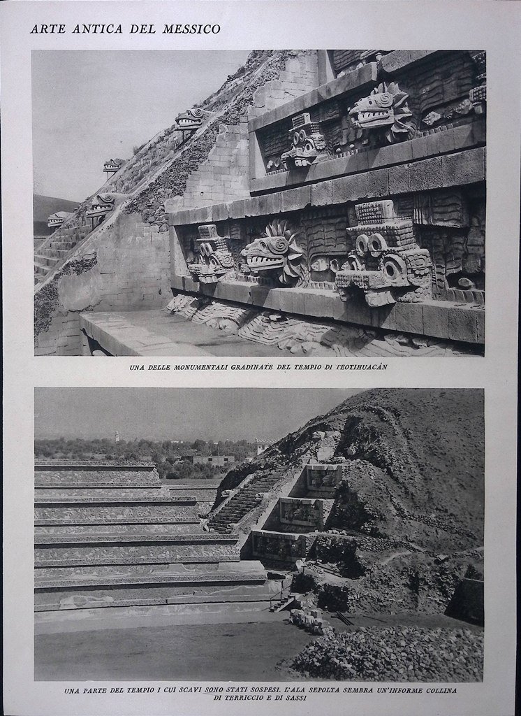 Stampa del 1928 Arte Antica del Messico Piramidi Sole Tempio Teotihuacan Scavi