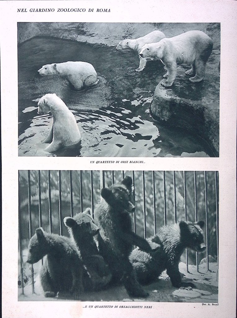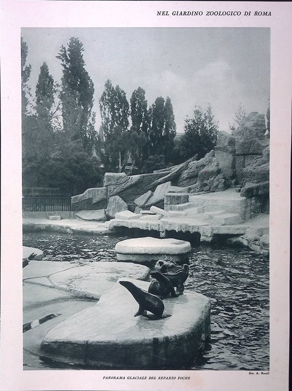 Stampa del 1928 Giardino Zoologico di Roma Panorama Reparto Foche Orsi Bianchi