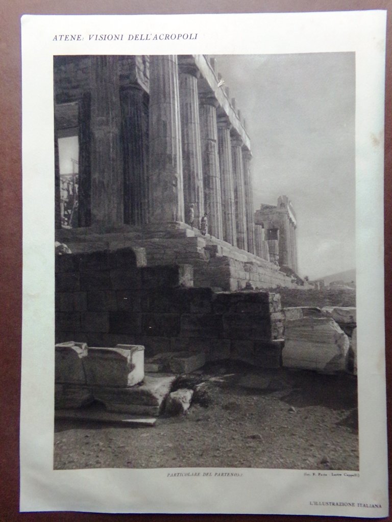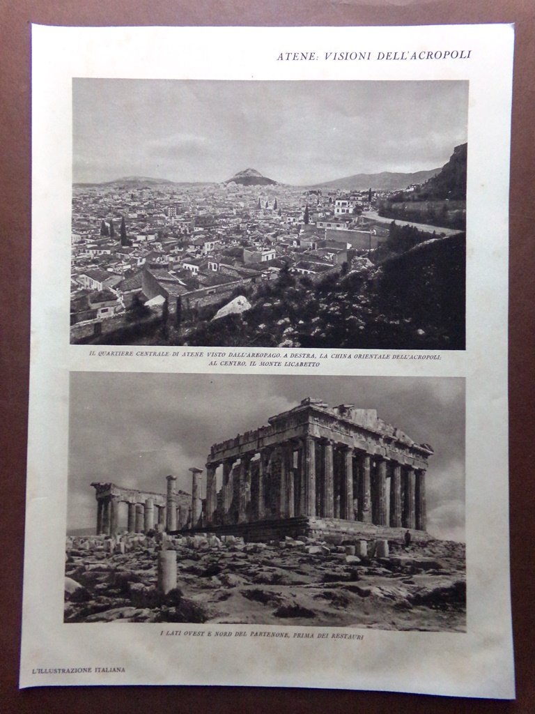 Stampa del 1929 Atene Acropoli Monte Licabetto Partenone prima dei restauri