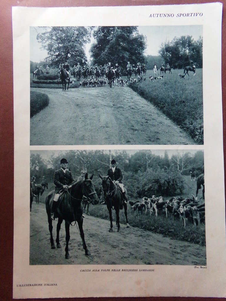 Stampa del 1929 Autunno Sportivo Caccia Volpe Brughiere Lombarde