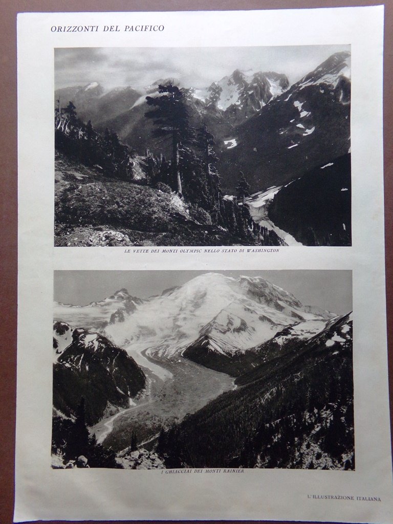 Stampa del 1929 Boschi British Columbia Monti Olympic Washington Rainier