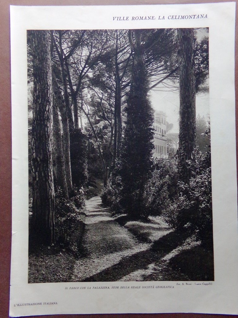 Stampa del 1929 Celimontana Parco Sede Reale Società Geografica Piazza Navicella
