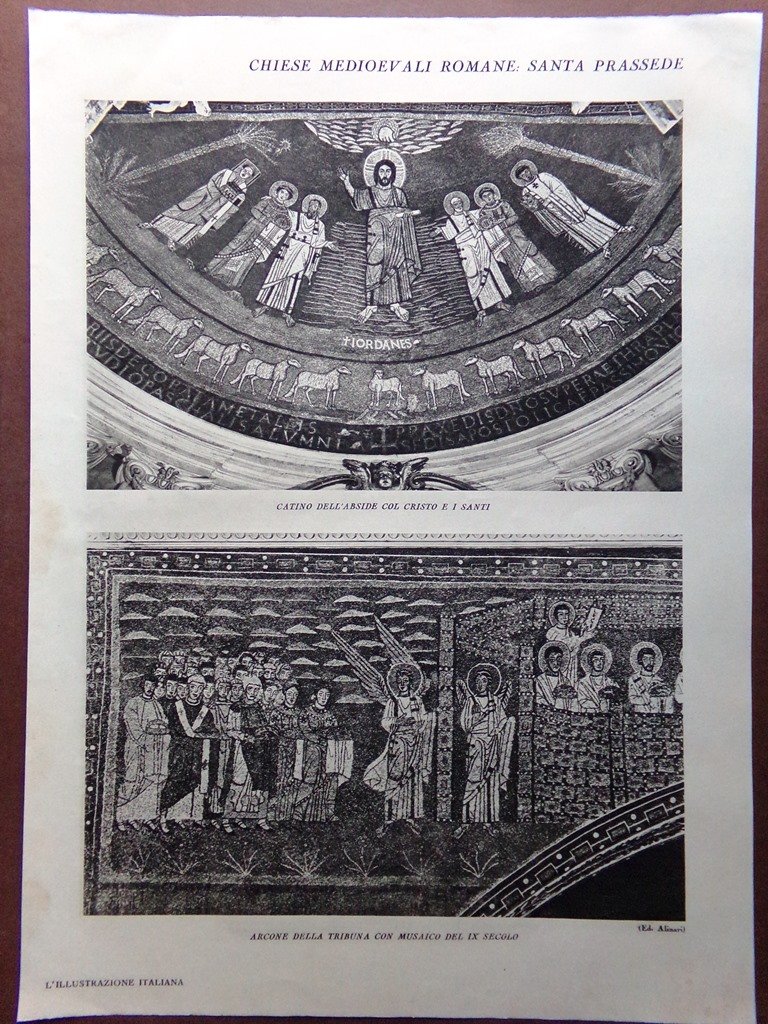 Stampa del 1929 Chiese Romane Santa Prassede IX Secolo Mosaici Redentore Angeli