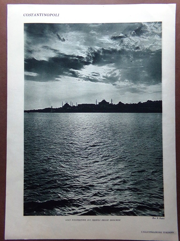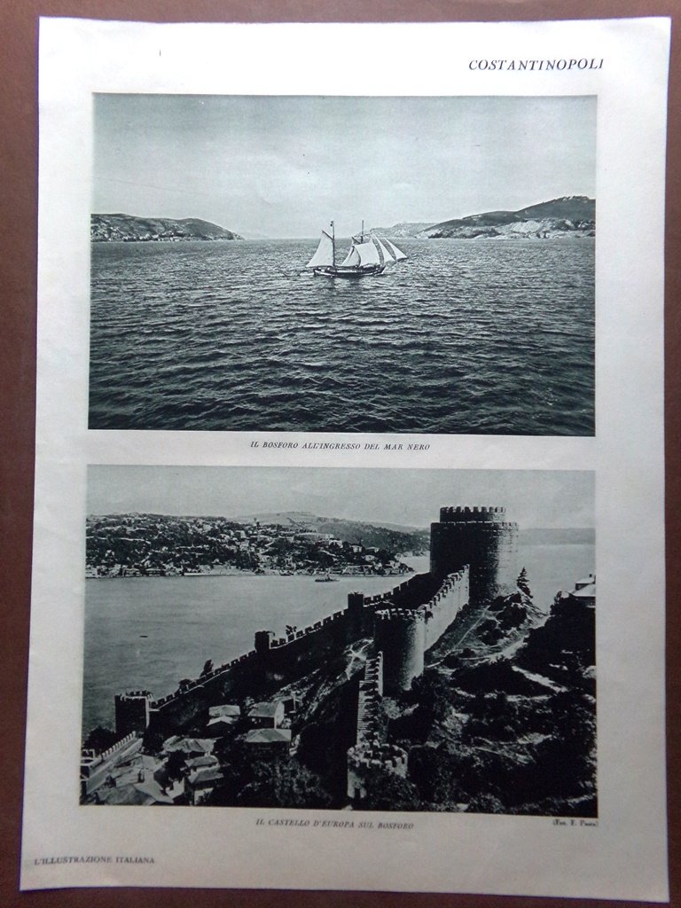 Stampa del 1929 Costantinopoli Bosforo Mar Nero Castello d'Europa Moschee