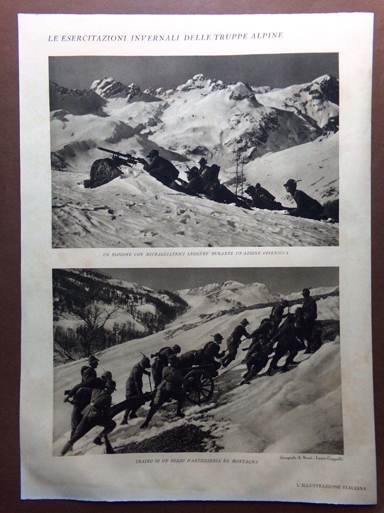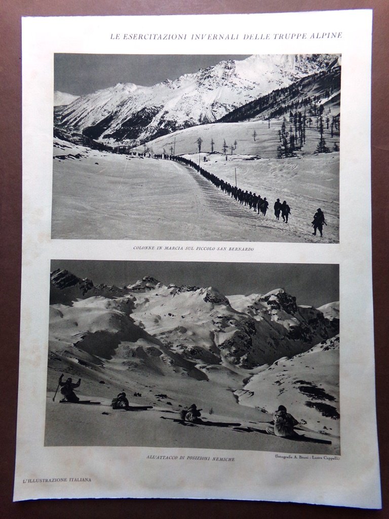 Stampa del 1929 Esercitazioni truppe alpine Marcia San Bernardo Azione Offensiva
