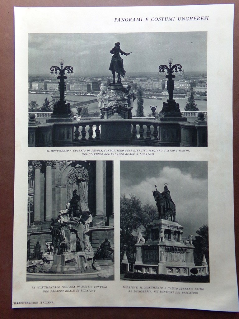 Stampa del 1929 Eugenio di Savoia Budapest Mattia Corvino Santo Stefano