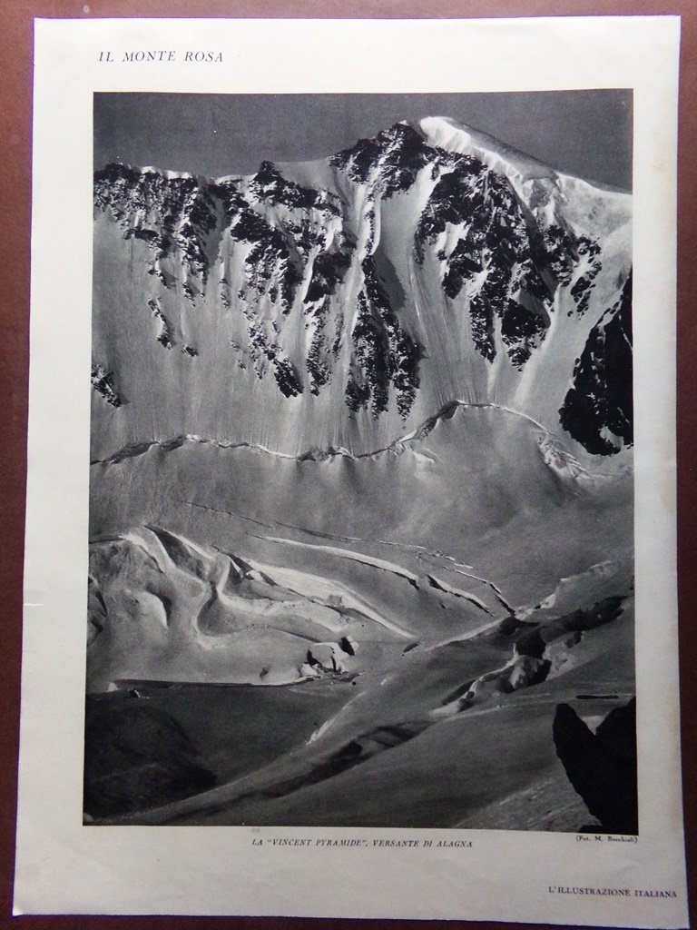 Stampa del 1929 Monte Rosa Macugnaga Vincent Pyramide Alagna