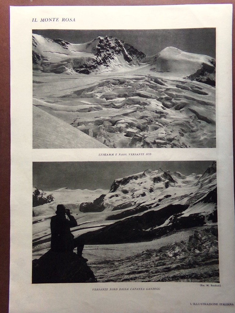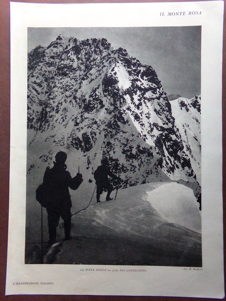 Stampa del 1929 Monte Rosa Punta Dufour Granzsattel Lyskamm Capanna Gandegg