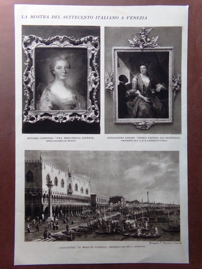 Stampa del 1929 Mostra 700 Venezia Pannini Guardi Carriera Longhi Canaletto