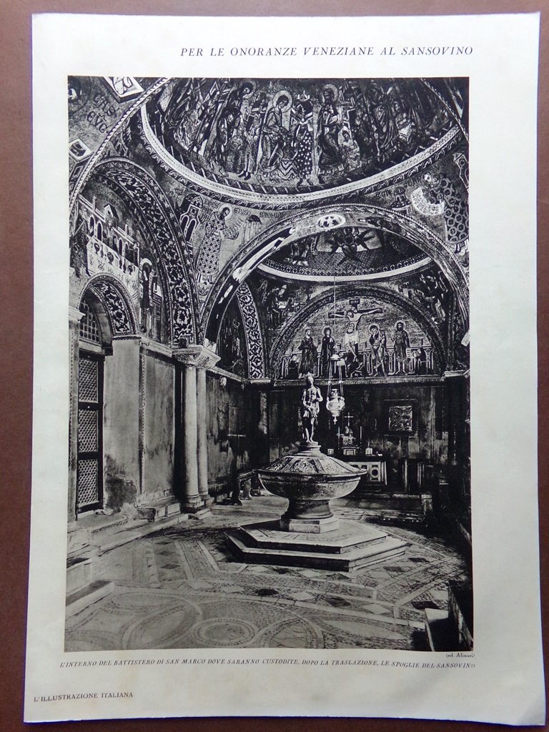 Stampa del 1929 Sansovino Battistero San Marco Campanile Venezia Palazzo Dolfin