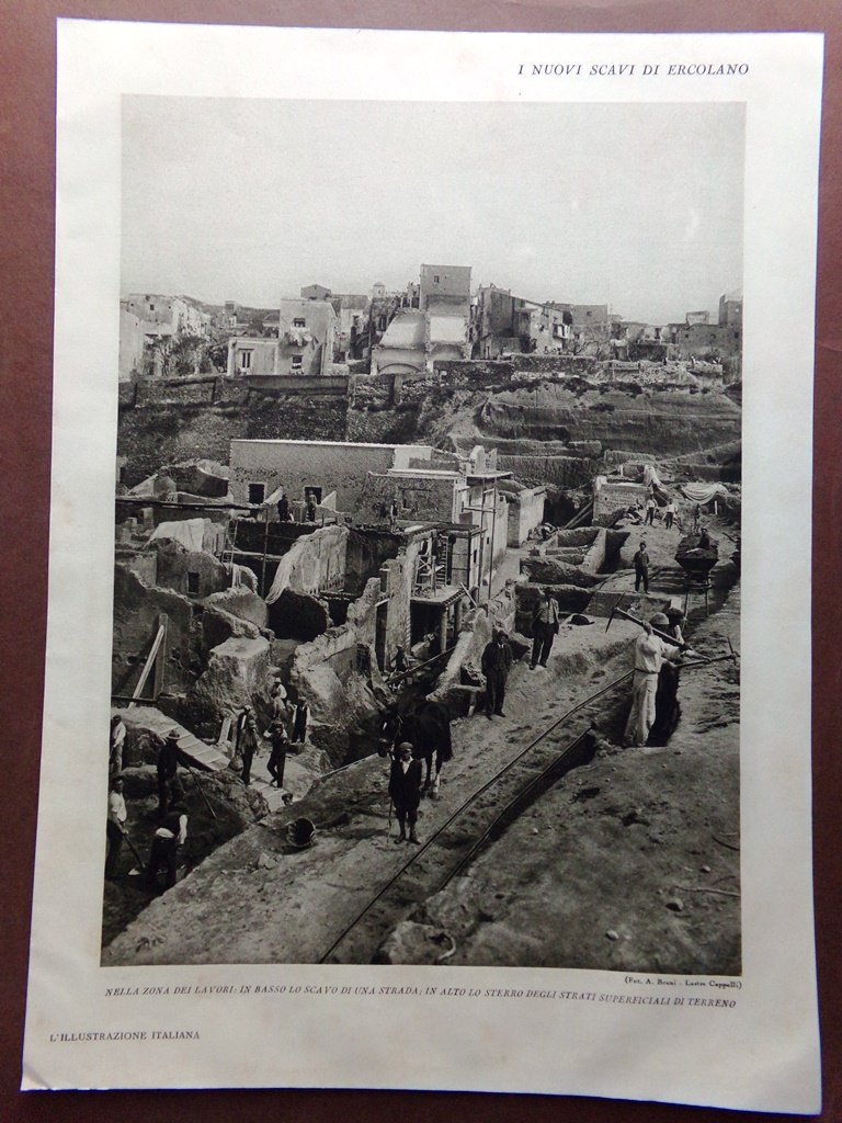 Stampa del 1929 Scavi Ercolano Strada Sterro Atrio Casa Tablino Atrio