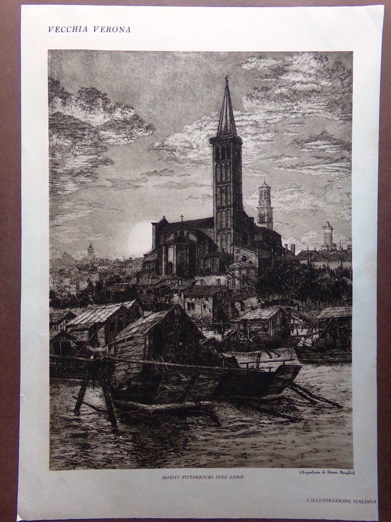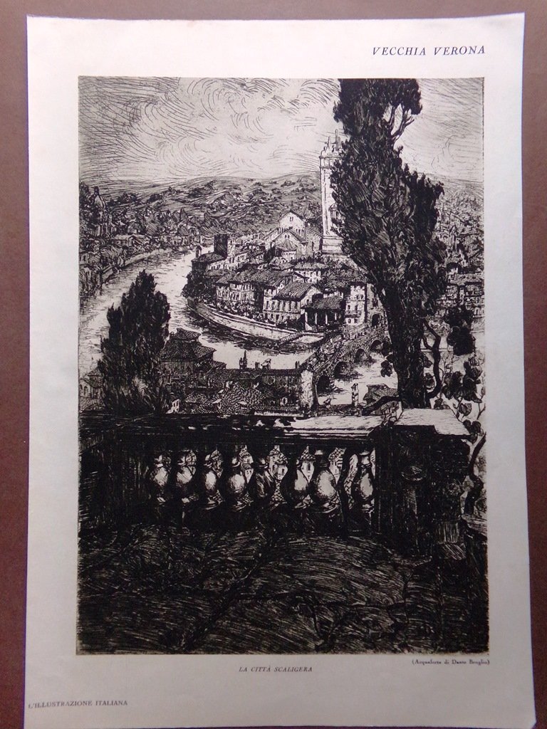 Stampa del 1929 Vecchia Verona Città Scaligera Adige