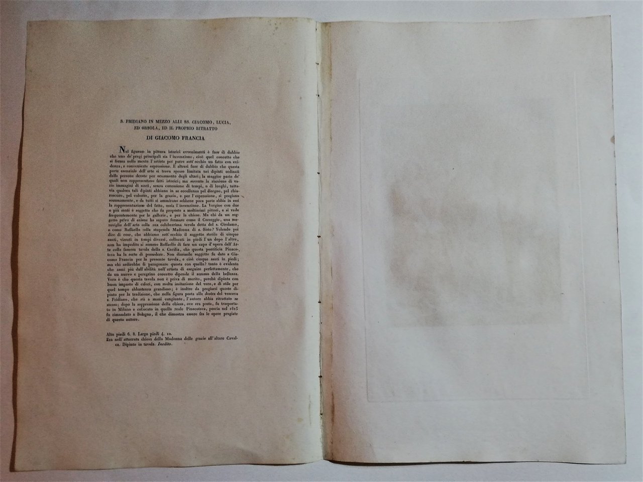 4 pagine che comprendono l'incisione più il testo con la descrizione.