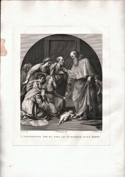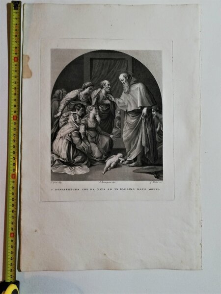 Stampa F. Rosaspina-San Bonaventura che dà vita ad un bambino nato morto 1830