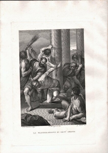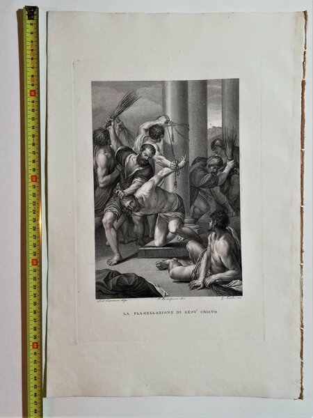 Stampa Incisione Antica F.Rosaspina La Flagellazione di Gesù Cristo 1830 46 x 30
