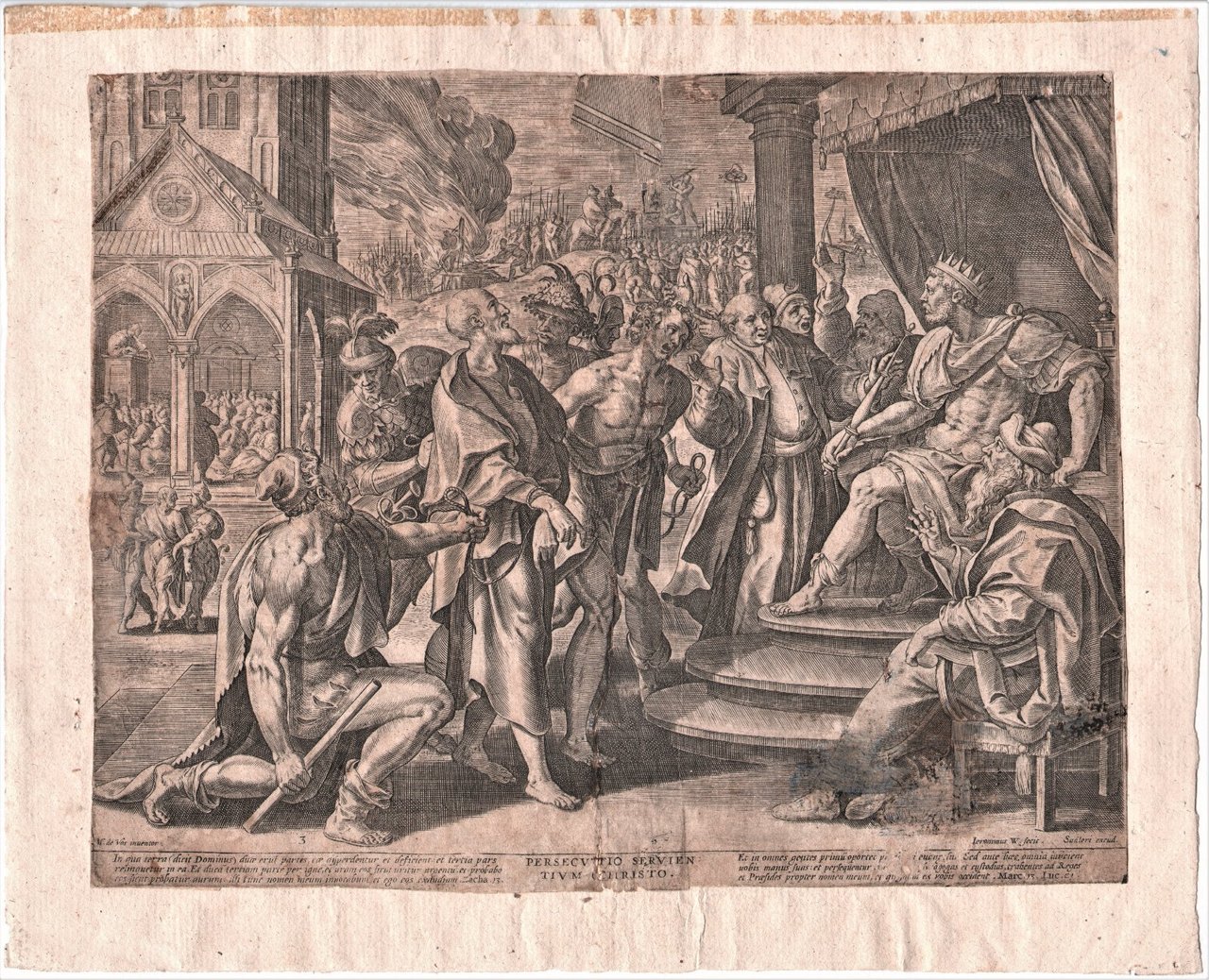 Stampa Incisione cinquecentina Persecutio Servientium Christo 1582 circa