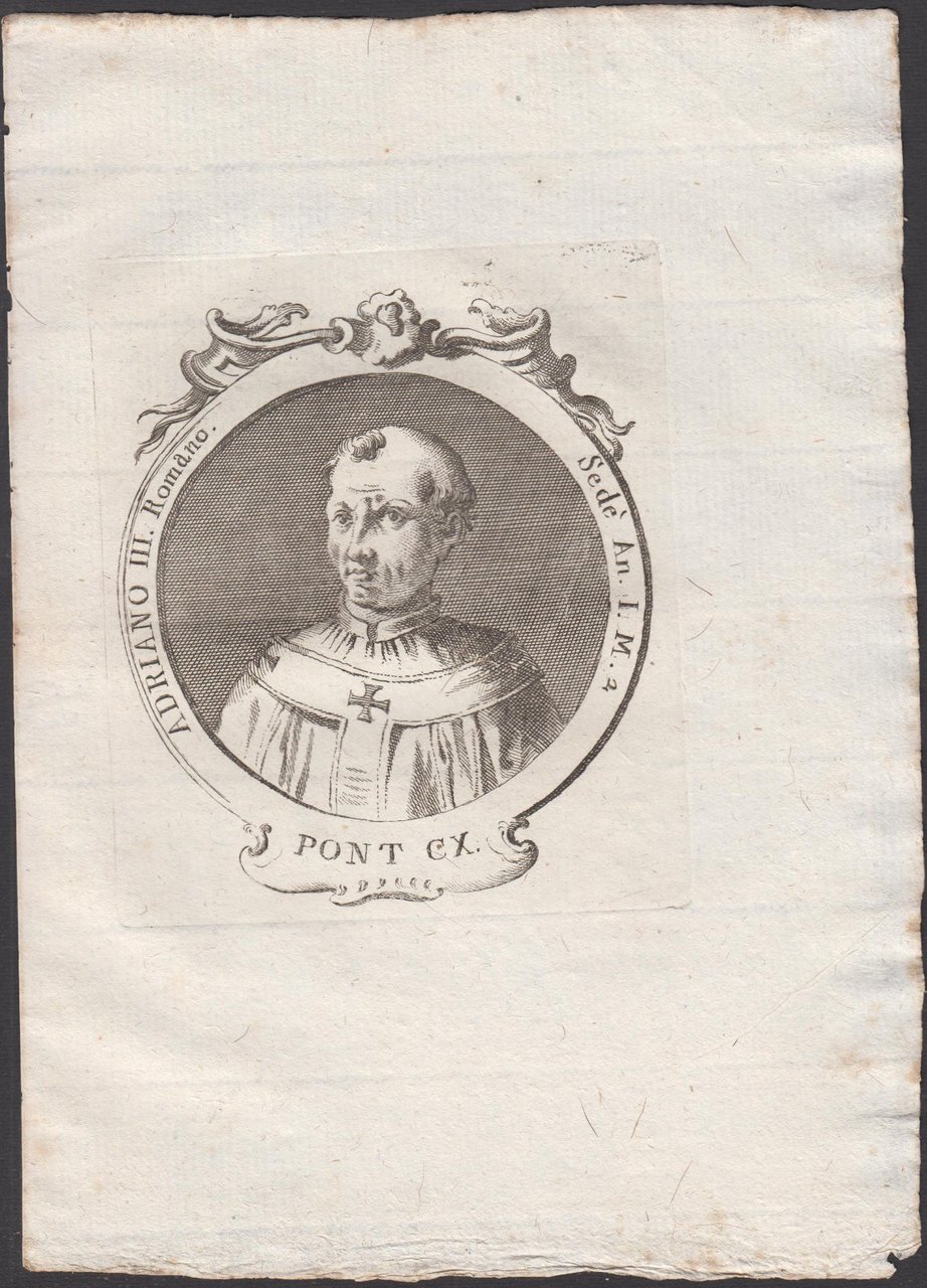 Stampa incisione Papa Adriano III Romano Pont. CX 1775 inc. G. B. Cavalieri