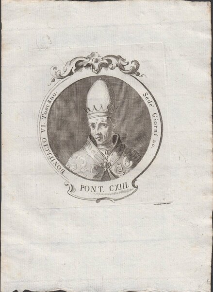 Incisione tratta da Effigies romanorum pontificum a S. Petro ad Pium VI feliciter regnantem: aeneis tabulis expressae, ordine chronologico digestae, ac in duos tomos distributae, autore Giovan Battista Cavalieri editore Remondini 1775
