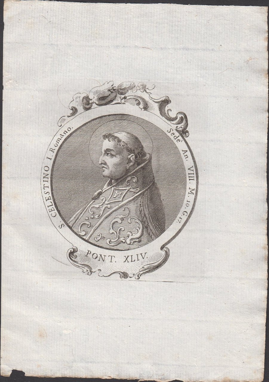 Stampa incisione Papa Celestino I Romano Pont. XLIV 1775 inc. G. B. Cavalieri