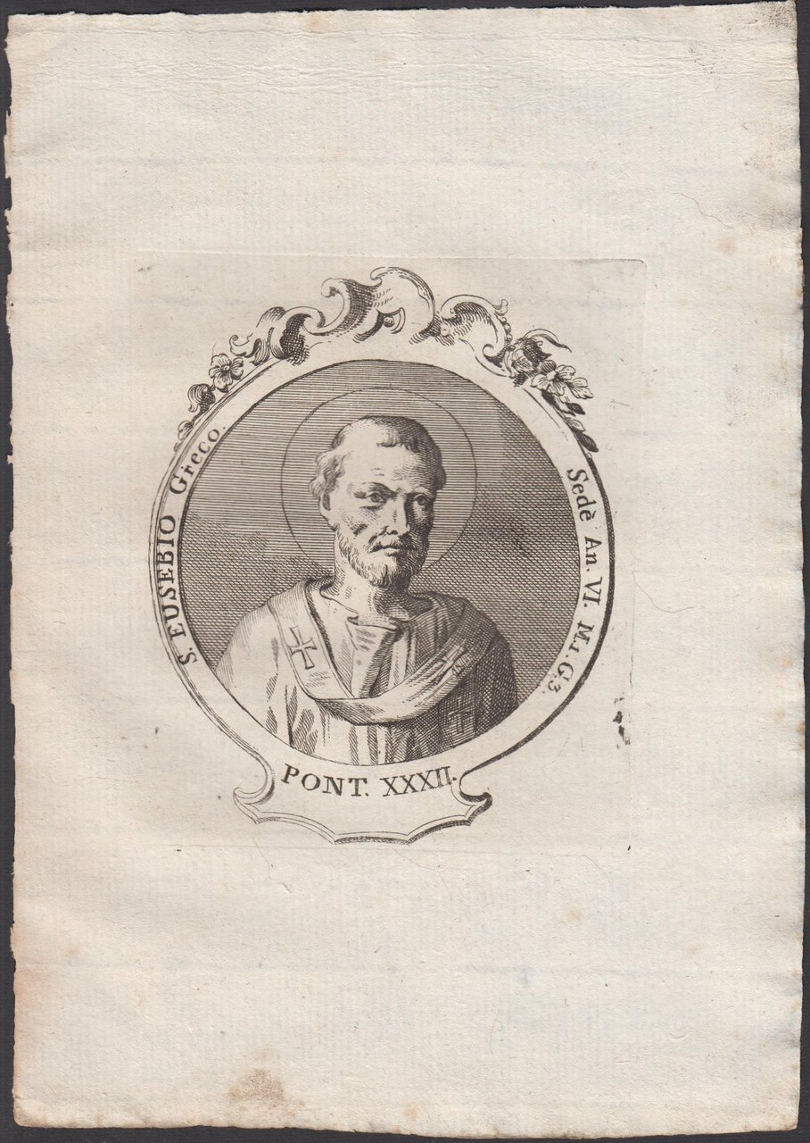 Stampa incisione Papa Eusebio Greco Pont. XXXII 1775 inc. G. B. Cavalieri