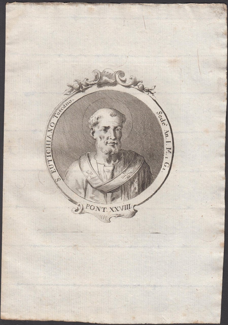 Stampa incisione Papa Eutichiano Toscano Pont. XXVIII 1775 inc. G. B. Cavalieri
