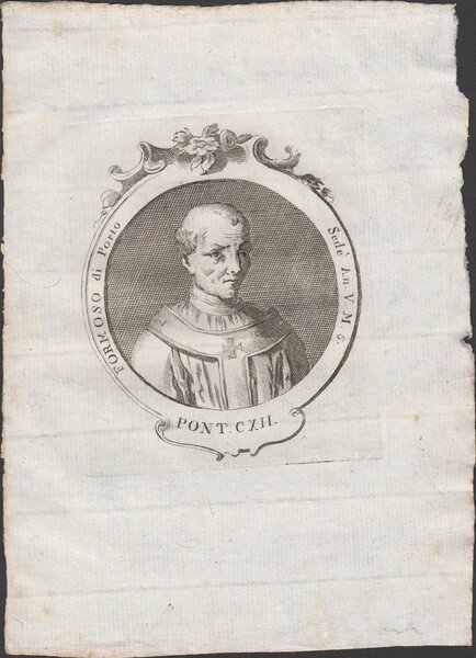 Stampa incisione Papa Formoso di Porto Pont. CXII 1775 inc. G. B. Cavalieri