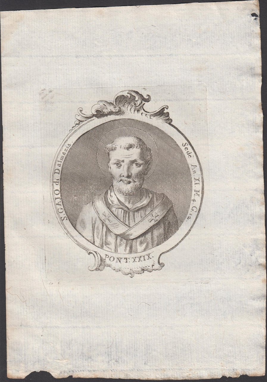 Stampa incisione Papa Gajo di Dalmazia Pont. XXIX 1775 inc. G. B. Cavalieri