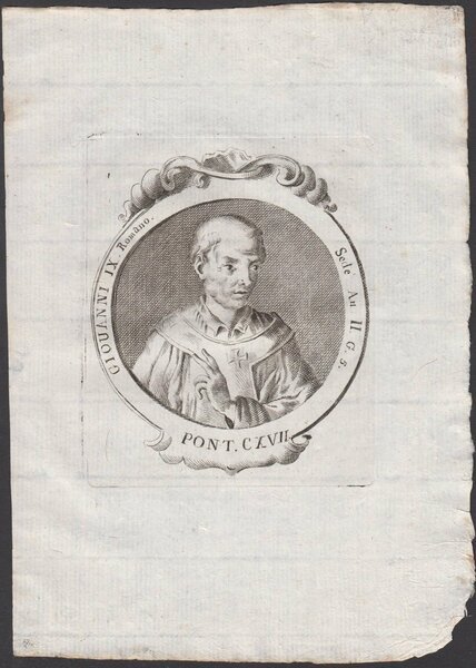 Incisione tratta da Effigies romanorum pontificum a S. Petro ad Pium VI feliciter regnantem: aeneis tabulis expressae, ordine chronologico digestae, ac in duos tomos distributae, autore Giovan Battista Cavalieri editore Remondini 1775