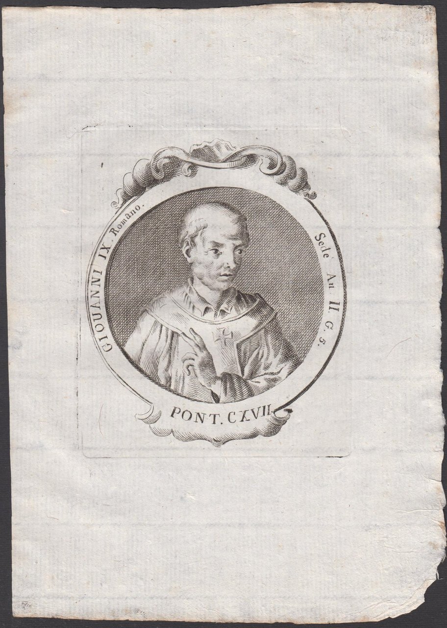 Stampa incisione Papa Giovanni IX Romano Pont. CXVII 1775 inc. G. B. Cavalieri