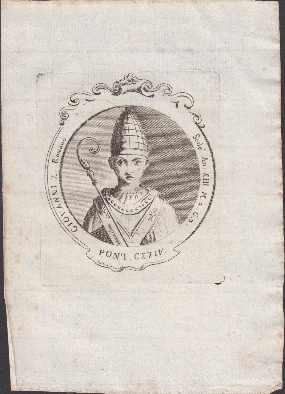 Stampa incisione Papa Giovanni X Romano Pont. CXXIV 1775 inc. G. B. Cavalieri