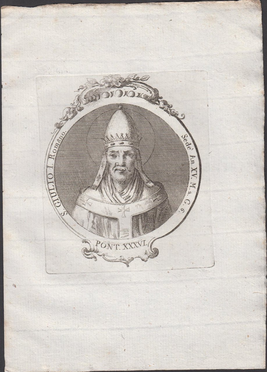 Stampa incisione Papa Giulio I Romano Pont. XXXVI 1775 inc. G. B. Cavalieri