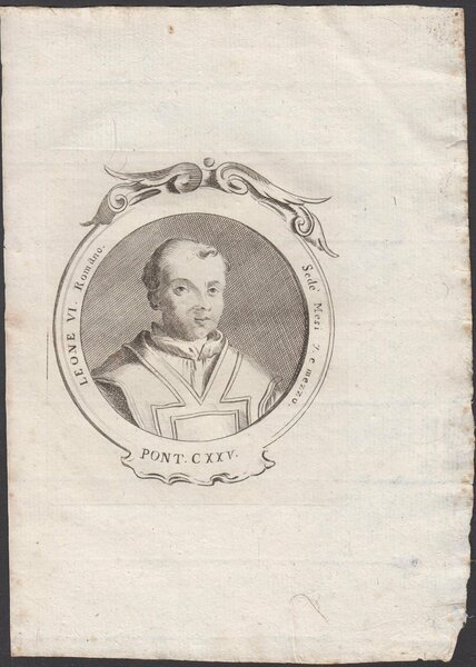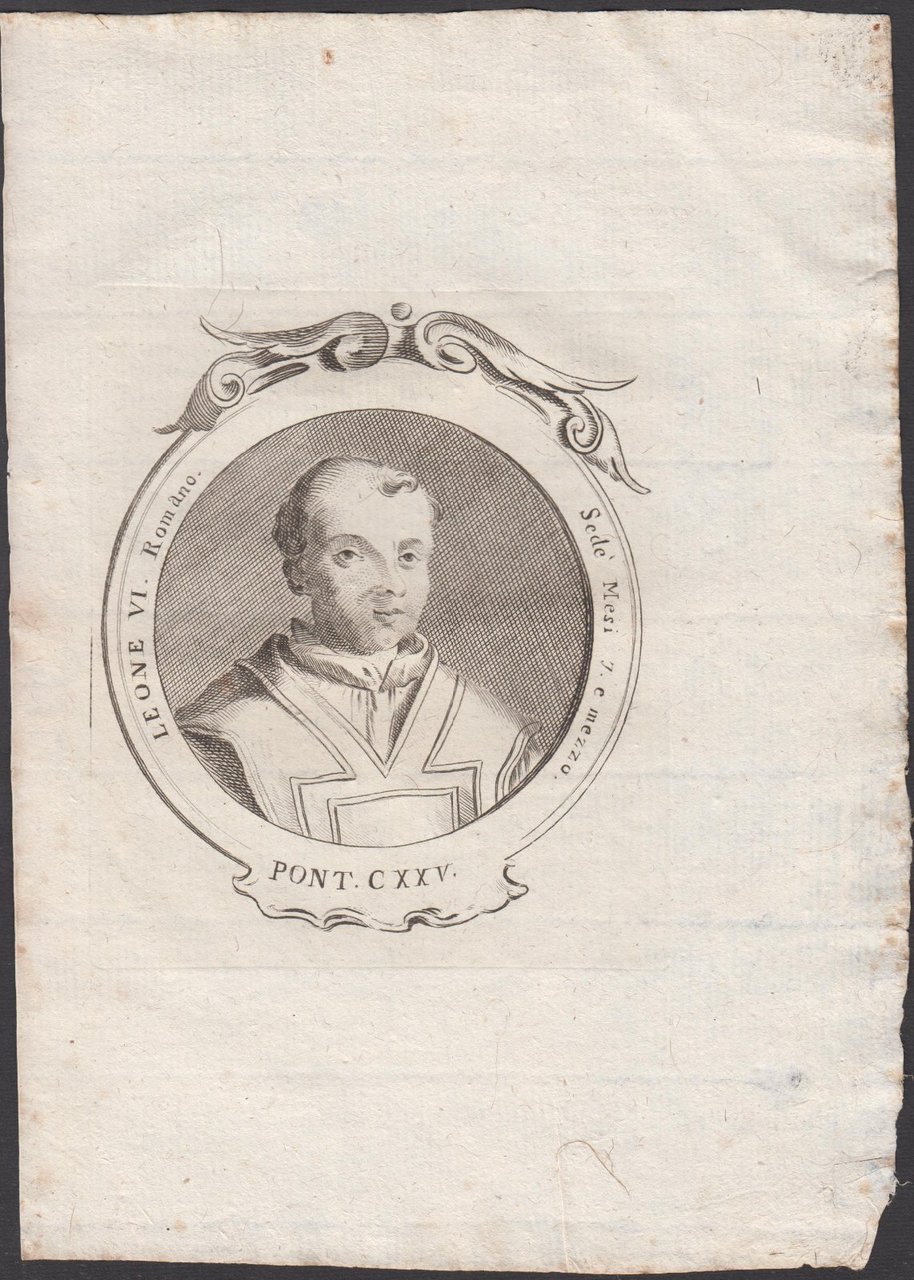 Stampa incisione Papa Leone VI Romano Pont. CXXV 1775 inc. G. B. Cavalieri