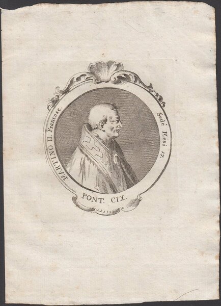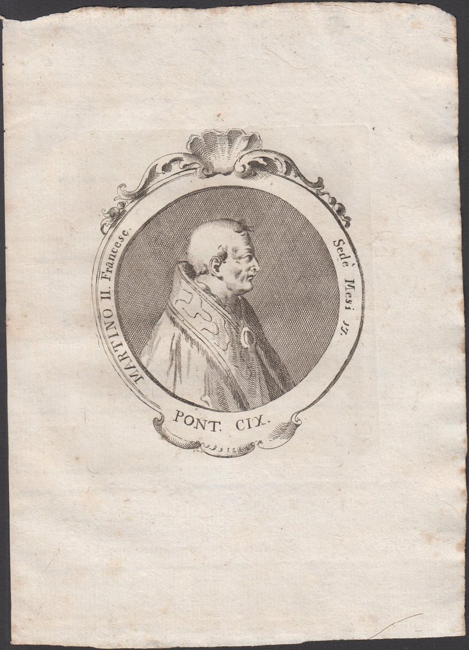 Stampa incisione Papa Martino II Francese Pont. CIX 1775 inc. G. B. Cavalieri
