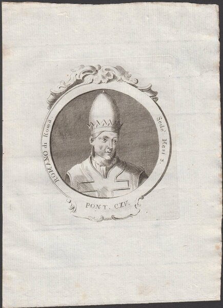 Incisione tratta da Effigies romanorum pontificum a S. Petro ad Pium VI feliciter regnantem: aeneis tabulis expressae, ordine chronologico digestae, ac in duos tomos distributae, autore Giovan Battista Cavalieri editore Remondini 1775