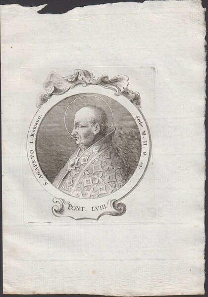 Stampa incisione Papa S. Agapeto I Romano Pont. LVIII 1775 inc. G. B. Cavalieri
