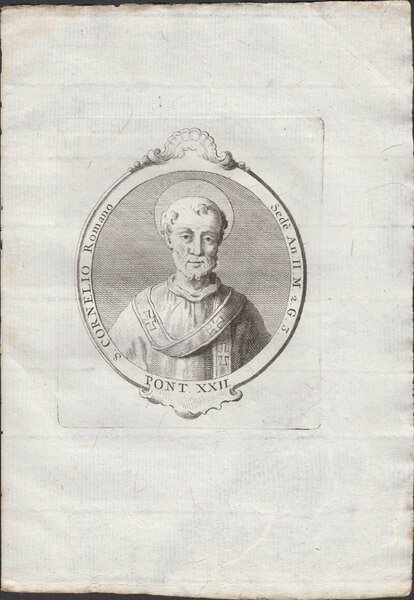 Stampa incisione Papa S. Cornello Romano Pont. XXII 1775 inc. G. B. Cavalieri