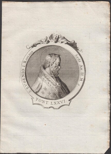 Stampa incisione Papa S. Eugeni Romano I Pont. LXXVI 1775 inc. G. B. Cavalieri