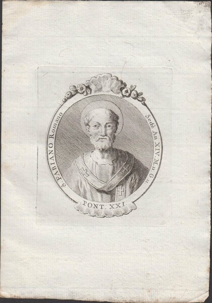 Stampa incisione Papa S. Fabiano Romano Pont. XXI 1775 inc. G. B. Cavalieri