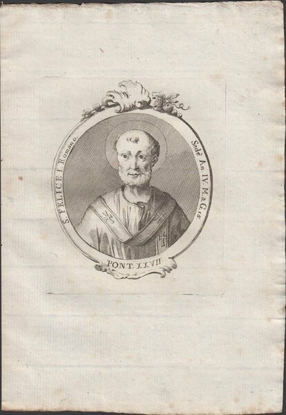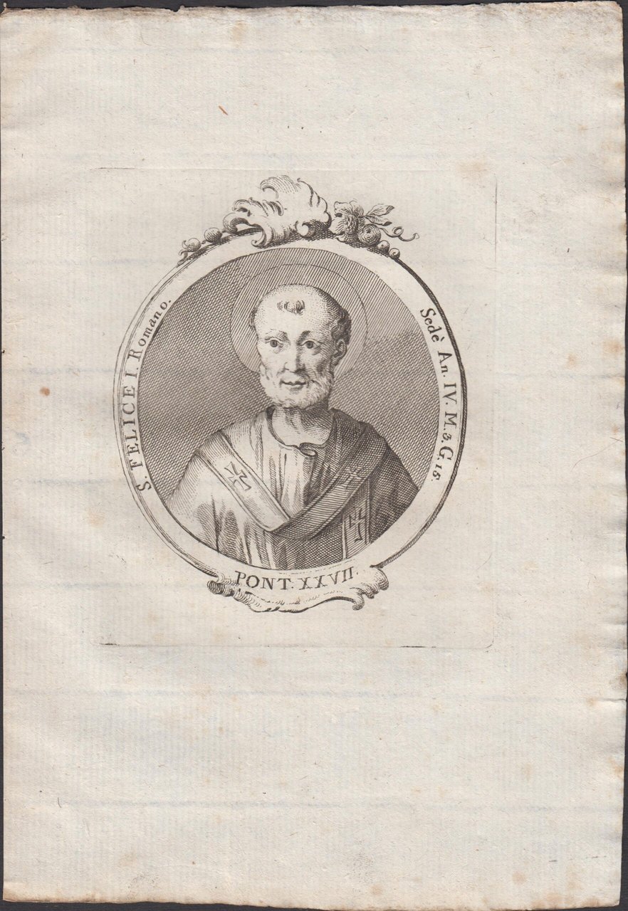 Stampa incisione Papa S.Felice I Romano Pont. XXVII 1775 inc. G. B. Cavalieri