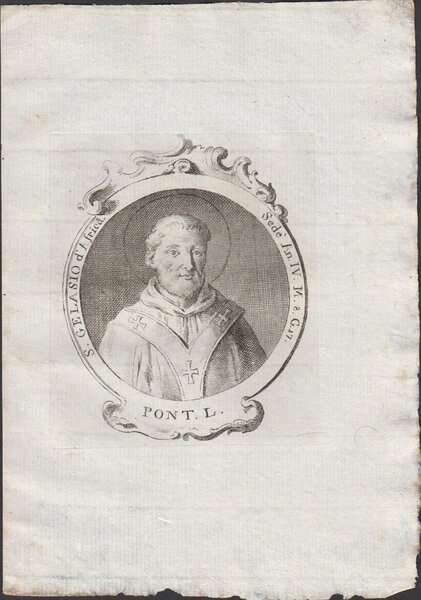 Stampa incisione Papa S. Gelasio d'Africa Pont. L 1775 inc. G. B. Cavalieri